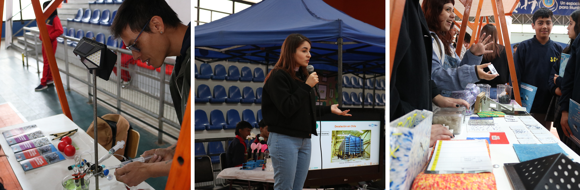 En paralelo a los stands, dos charlas científicas se llevaron a cabo para los colegios presentes. El Dr. César Zúñiga, investigador del AMTC, presentó en torno a fuentes de energía alternativas en el contexto de calentamiento global; mientras que Paula Madariaga, investigadora de Ko-Yaku, realizó la segunda charla sobre tecnologías para la desalinización del agua.